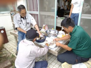 釣り大会でハゼ150匹くらい釣れました。釣ったハゼはこまつ食堂に持ち帰り子ども達と一緒に唐揚げを作りました。