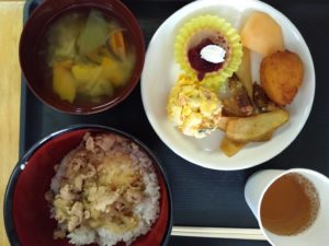 - かぼちゃ、ポテトサラダ( 野菜は地域の方から)