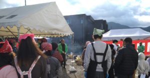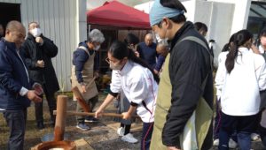 子どもたちや地域の方約200人の方が参加してつきたてのお餅と豚汁を楽しみました。