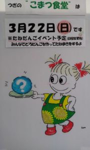 次回こまつ食堂は3月22日の予定です。行事の都合で変更することがあります。